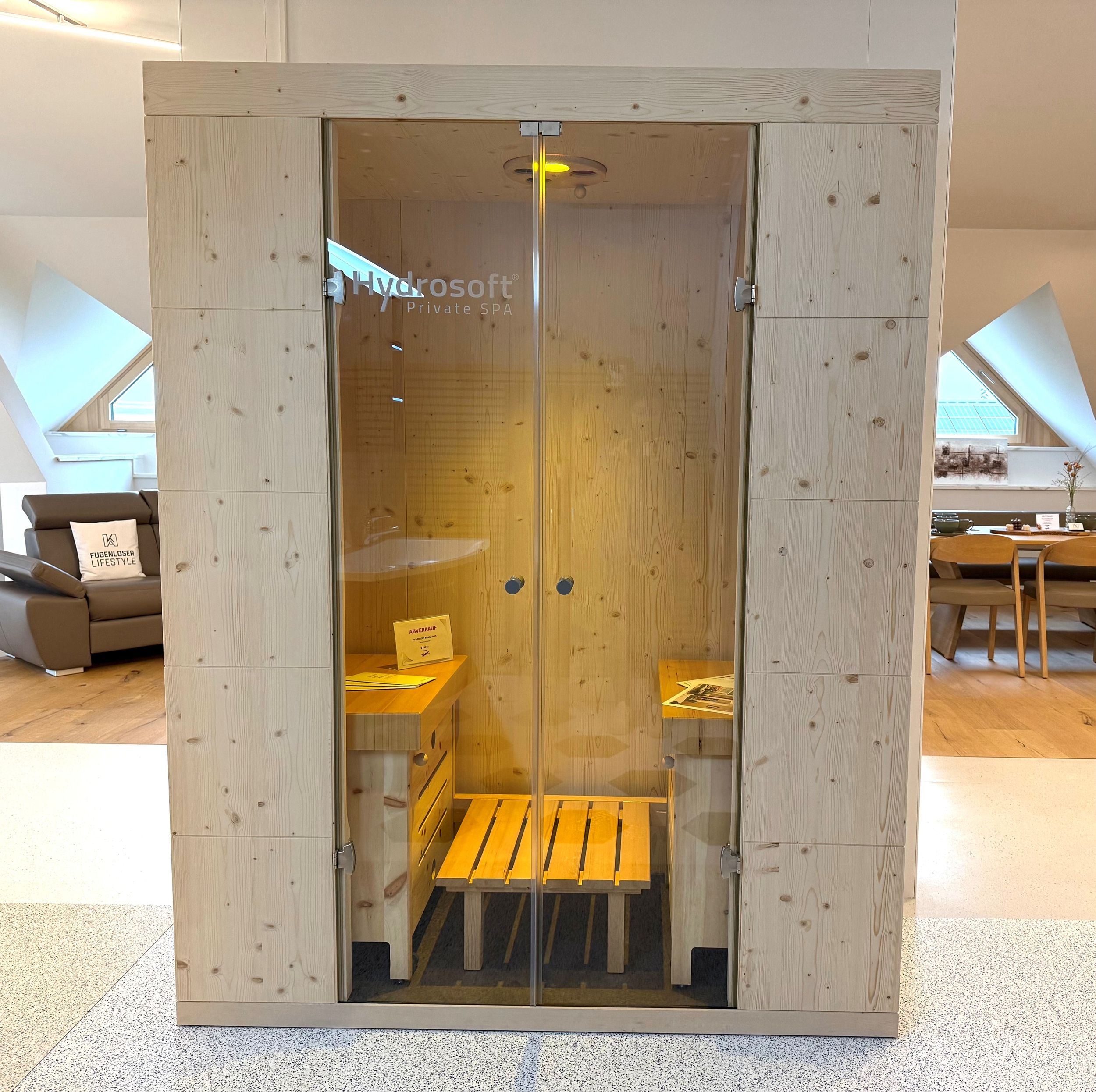 Möchten Sie das luxuriöse Erlebnis einer Dampfdusche direkt vor Ort ausprobieren? Bei uns haben Sie die Möglichkeit, die Dampfdusche in aller Ruhe zu testen – Eigener Raum mit Versperrbarer Tür , um das volle Entspannungsgefühl zu erleben.